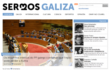 O grupo de comunicación Sermos Galiza lanzou hoxe á Rede o seu xornal dixital. Polo momento en fase beta. Accesíbel desde ás 8h desta mañá no dominio www.sermosgaliza.com, o dixital ofrecerá unha análise diaria da actualidade galega e internacional, no que atinxe á política, á sociedade, á economía ou ao mundo do traballo. A cultura e a ciencia terán tamén un espazo propio na publicación.