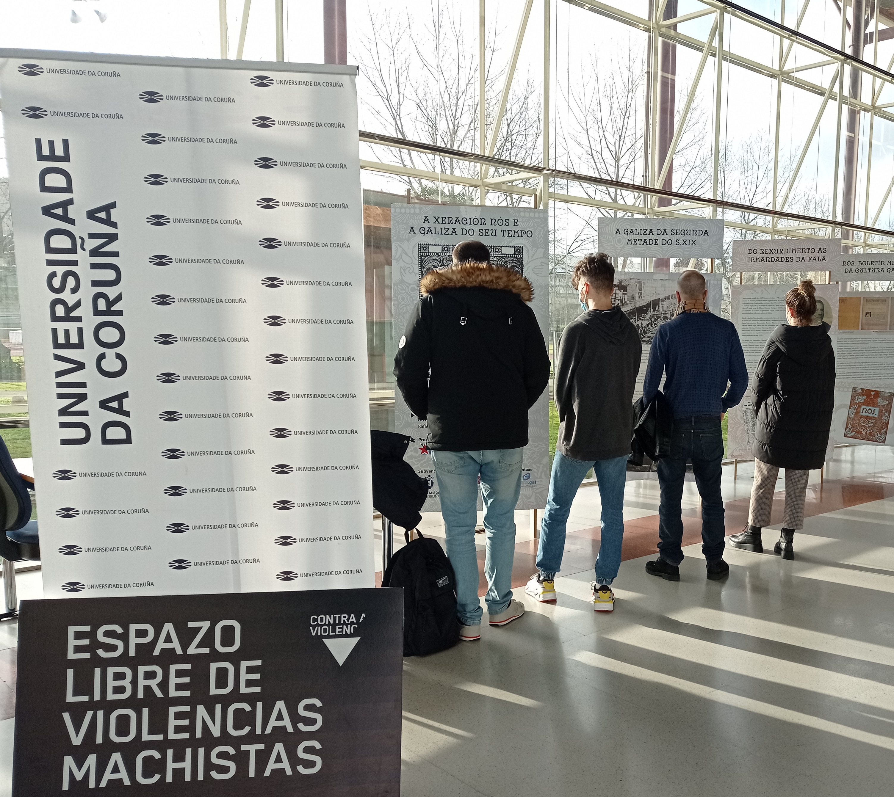 A través da mostra percórrese, así mesmo, a evolución da Galiza de finais do século XIX e o inicio do s. XX, no que se nuclean as relacións persoaos e intelectuais da devandita xeración. A través dos paneis obsérvase como se foi artellando o grupo Nós, nutríndose de esforzos previos protagonizados por integrantes doutras xeracións (caso das e dos integrantes do Rexurdimento, inspiradores das xentes de Nós); e como os integrantes de Nós participarían de iniciativas coprotagonizadas por outras xeracións, xa no tempo republicano, do que tamén participarían cofundadores de Nós, como Ramón Otero Pedrayo, Daniel R. Castelao, Vicente Risco ou Florentino López Cuevillas. Igualmente, na exposición preséntanse as ideas-forza que actuaron como común denominador da Xeración Nós, sendo centrais boa parte das súas producións políticas, intelectuais e académicas para comprender a Galiza dos nosos días, facéndose un especial recordo ao Seminario de Estudos Galegos.